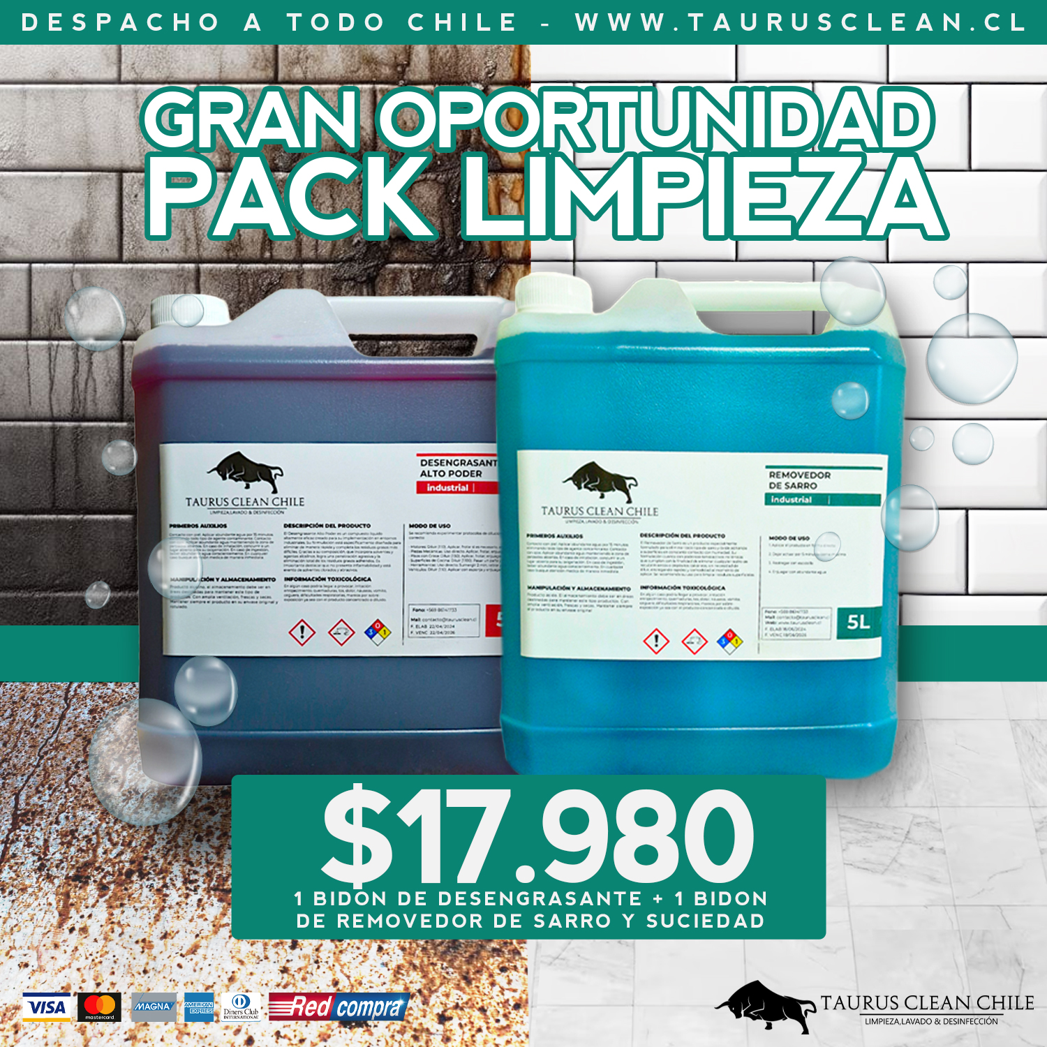 Removedor de Sarro Taurus Clean. Es un producto especialmente formulado para eliminar todo tipo de sarro y óxido adherido a superficies en constante contacto con humedad. Su formulación cuenta con poderoso tensoactivos no iónicos que cumplen con la finalidad de eliminar cualquier rastro de recubrimientos o depósitos calcáreos, sin necesidad de diluir, entregando rapidez y comodidad al momento de aplicar. Se recomienda su uso para limpiar residuos superficiales.